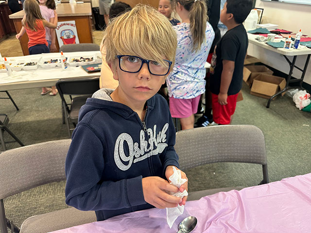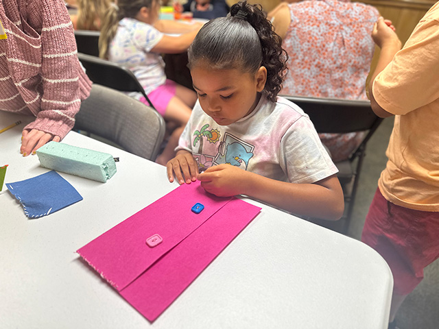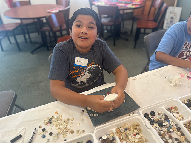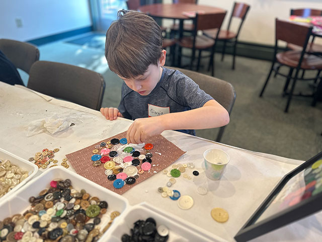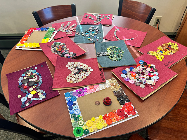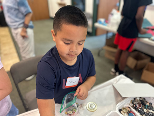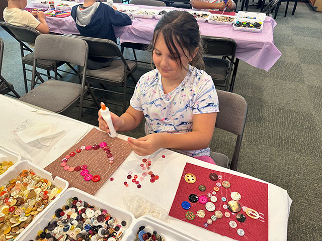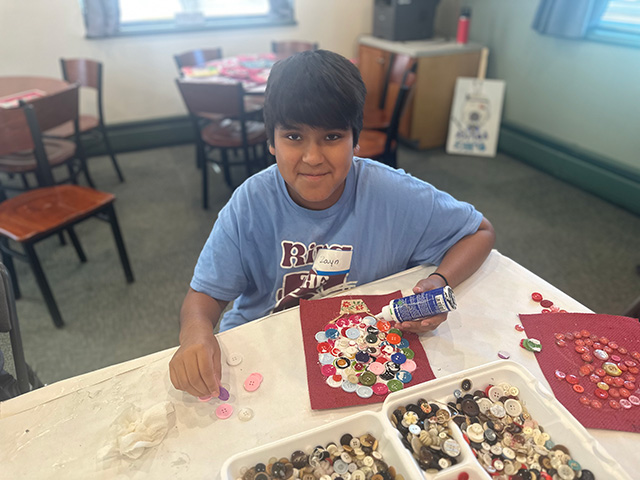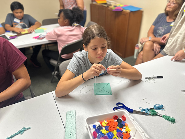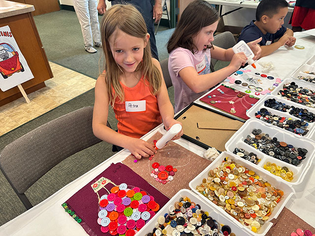 The children also finished assembling their button mosaics and sewing their felt pouches. Tomorrow they will make friendship bracelets and decorate “sheep” cakes! Also, recreation tomorrow will involve water balloons, so the children should come prepared to get wet! (They can bring a beach towel if they want).